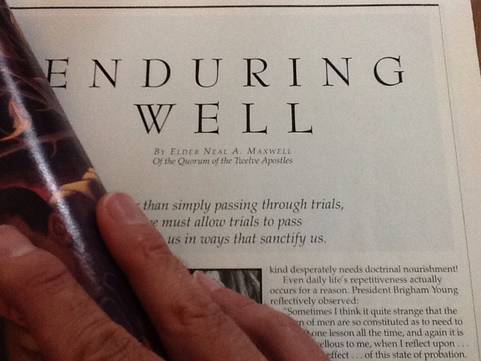 It was the article “Enduring Well” in that 1997 Ensign that fundamentally altered my perception of the gospel and the tenor of my developing discipleship to Christ. The author, Neal A. Maxwell, has always been a stranger in the sense that I never met him, but his influence upon me, starting with this masterfully written article, has had the impact of a close friend.